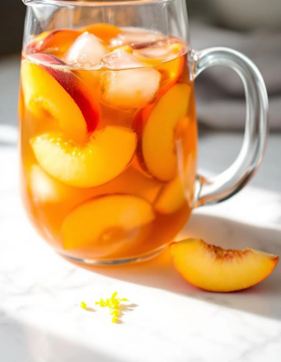 I start by slicing fresh peaches, their flesh juicy and sticky, and dropping them into a pitcher. The sound of the fruit hitting the sugar and then the tea is a messy, satisfying splash that kicks off the prep.