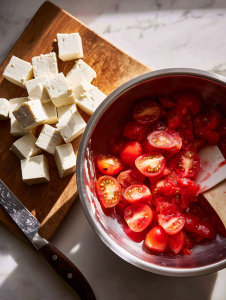 - Begin by chopping the ripe tomatoes into small pieces or blending them until smooth, depending on your preferred texture. Prepare the paneer by cutting it into bite-sized 2 cm cubes and soaking briefly in warm salted water to keep it soft.