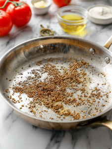 - Heat a heavy-bottomed pan over medium heat and add cumin seeds. Toast them until fragrant, about 30 seconds, until they start to pop and release aroma.