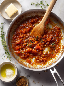 - Add finely chopped onions or the tomato puree directly to the pan, cooking until the mixture turns a golden color and smells sweet, about 10 minutes. This slow cooking helps develop the base flavor.