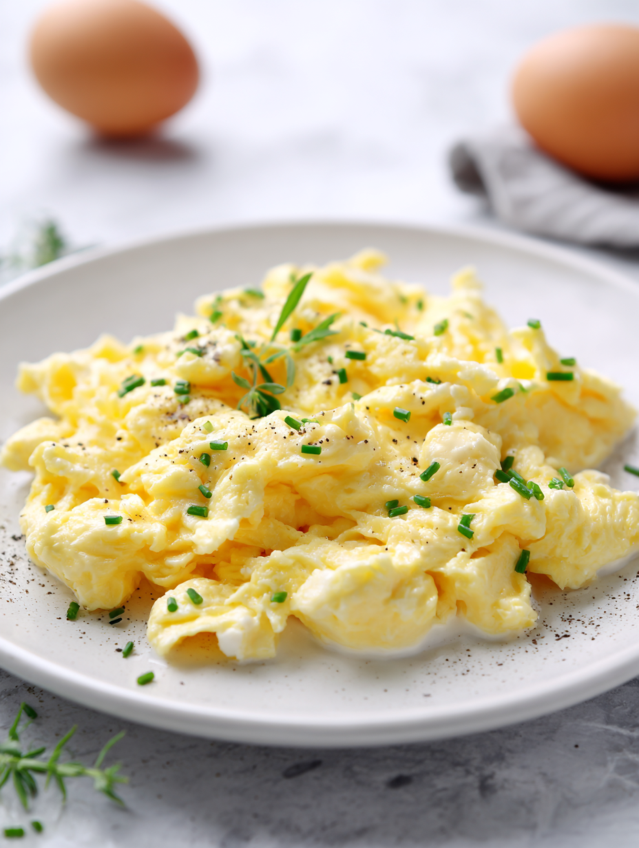 - Use low heat → Keeps eggs silky and prevents rubbery curds.