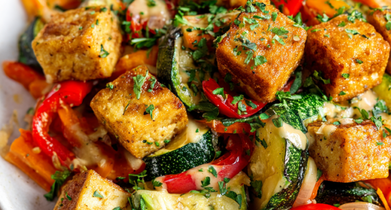 This skillet dish is a reminder that simple, honest ingredients can come together in a way that’s both satisfying and unpretentious. It’s perfect for those nights when time is tight, but flavor still matters. The aroma of crispy tofu and charred vegetables lingering in the kitchen makes every bite worth the effort.