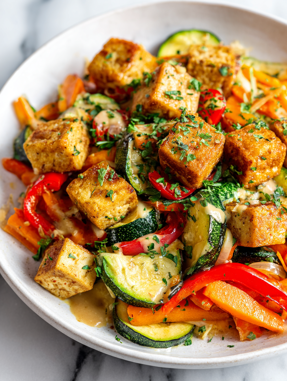 This tofu vegetable skillet isn’t about perfection or fancy techniques. It’s about throwing together something honest, quick, and full of flavor, using what I usually have on hand. I like how the crispy tofu gets that golden crust, contrasting with the tender, slightly charred veggies—simple textures that keep every bite interesting.