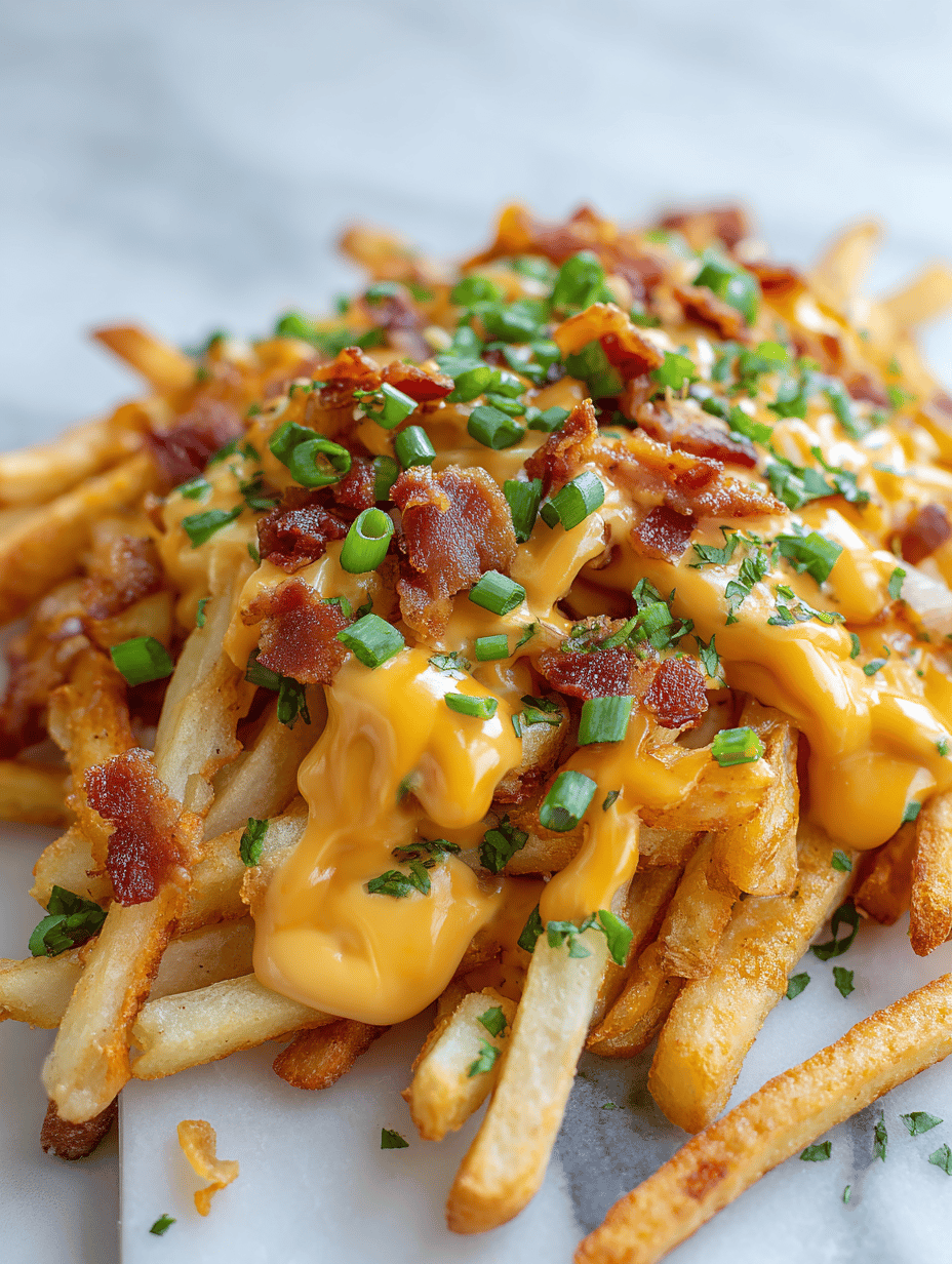 French fries are a comfort food that’s been given a new life with this cheese-loaded twist. It’s about balancing that perfect crunch with oozing cheese that stretches every time you lift a fry. This version is chaotic, indulgent, and perfect for sharing or not sharing at all. It’s a messy, flavorful throwback to childhood favorites but with a grown-up depth.