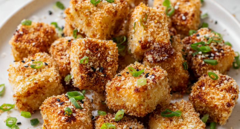 - Check for doneness: the coating should be crisp and golden, tofu should be firm but not dry, and edges should crackle when pressed.