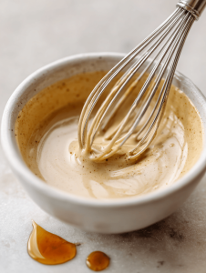 6. Taste the dressing and adjust: if it's too thick, add a few more drops of water; if it feels too tangy, stir in a tiny drizzle of maple syrup. Whisk until perfectly balanced.