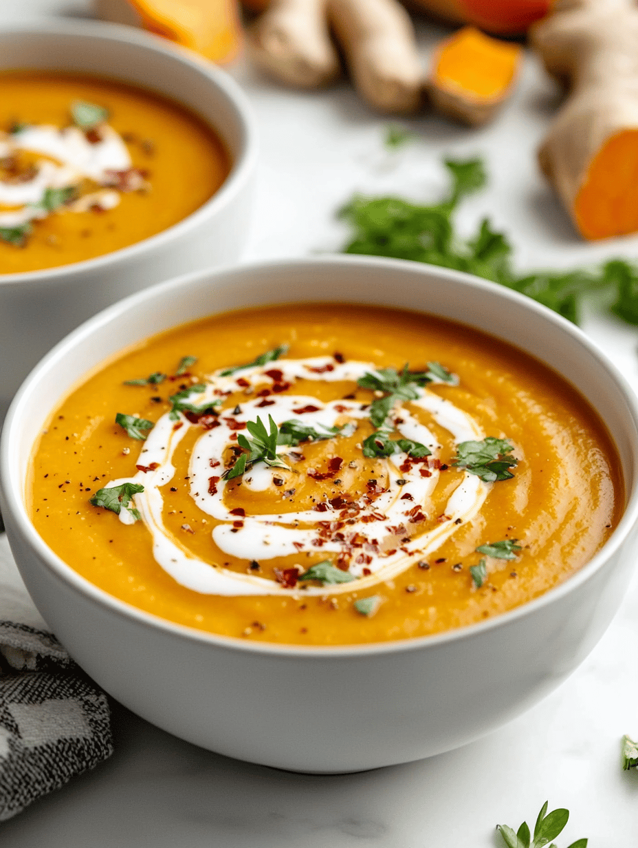 - Serve the soup hot, garnished with a drizzle of coconut milk or fresh herbs if desired. Enjoy its rich, spicy-sweet flavor and smooth texture!
