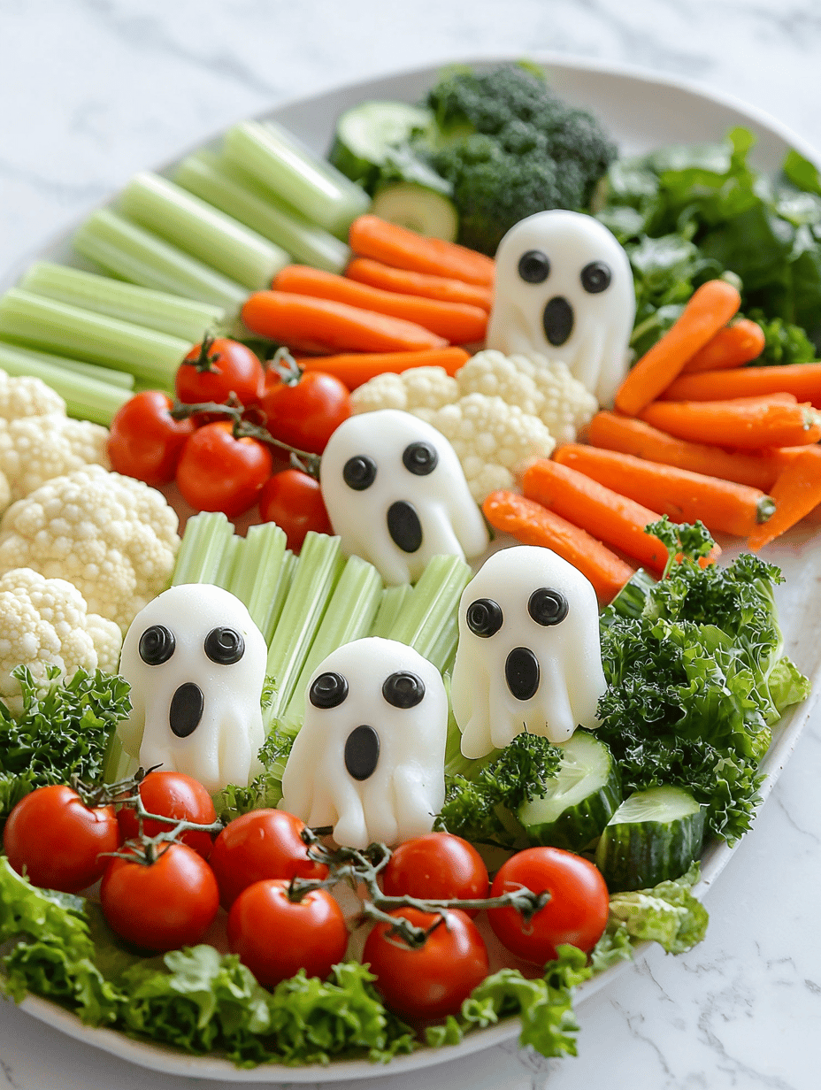 Creating a Halloween ghost veggie platter is more than just assembling snacks. It’s about making the holiday memorable with a little chaos and a lot of flavor. The vibrant greens, whites, and stark black eyes give the table an eerie yet charming vibe that’s perfect for autumn gatherings.