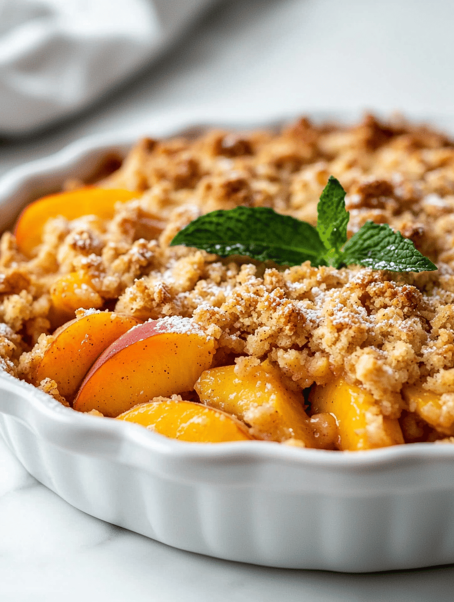 What sets this crumble apart is the surprising crunch of toasted oats with a hint of cinnamon, contrasting against the juicy peach filling. It’s an imperfect perfection—bit messy, wildly flavorful, and totally honest. Plus, the rustic charm of spooning warm crumble straight from the dish makes every bite feel like a little celebration.