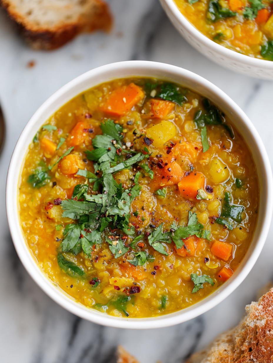 This soup feels like a quiet celebration of simple ingredients and bold spice. The warmth of turmeric, the heartiness of lentils, and the freshness of greens come together in a bowl that’s both comforting and invigorating.